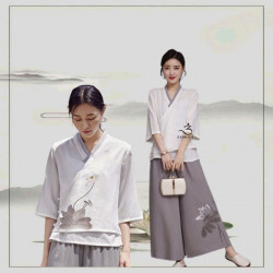 Hàng thủ công cao cấp may vẽ thêu theo yêu cầu, Quần áo đi lễ chùa, ngồi thiền, tập yoga dưỡng sinh - Bộ Đan Thiên nữ