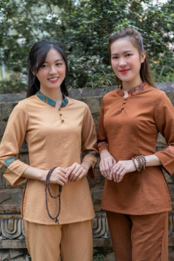 Bộ Pháp Phục, Đồ Lam Nữ Đi Chùa – Cổ Tàu Thêu Ngộ - Size S,M,L,XL