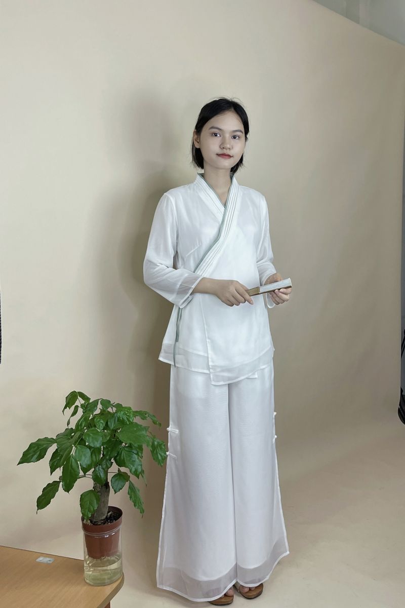 Bộ Đan Lâm Tuyền - chất liệu vải vải cắt may tay thủ công từng bộ bằng may bằng vải voan loan liễu (voan ngọc trai) chất lượng cao, mang lại độ mềm mại, nhẹ nhàng và cảm giác bay bổng, thoải mái cho người mặc, đặc biệt không bị nhàu nhĩ, thấm hút mồ hôi tốt, tạo cảm giác thoải mái khi đi lại vận động hay đi lễ hội, du lịch....