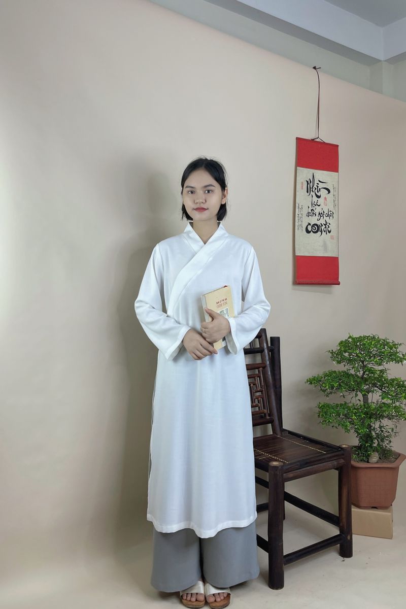 Bộ Ngọc Minh dài - chất liệu vải vải thô Cara hoặc thô đũi Linen thuộc một trong những loại vải có tính bền và thân thiện với môi trường. Ưu điểm chính phải kể đến chính là tính an toàn (không gây kích ứng da) và khả năng thấm hút mồ hôi quá tuyệt vời của vải thô. Với thành phần chủ yếu là sợi bông và sợi gai (đay), vải thô có thể nói là loại vải nhẹ nhàng nhất, thích hợp nhất dành cho các mùa và dành cho người tu thiền, tập dưỡng sinh yoga