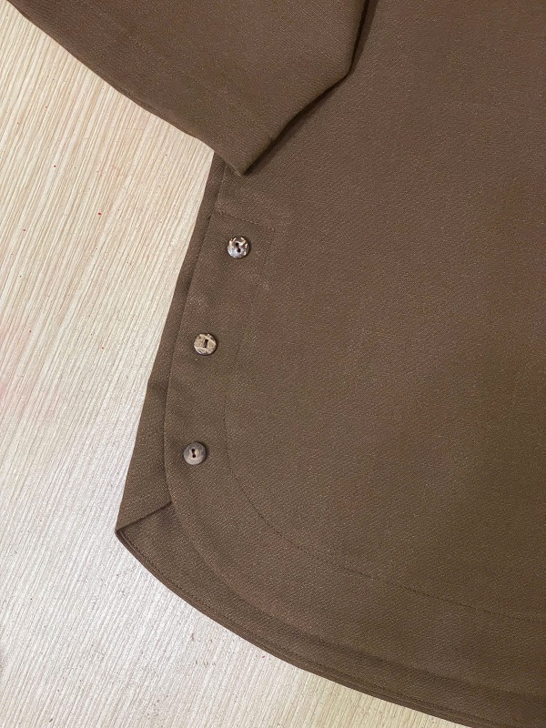THUẬN HÒA được thiết kế với kiểu dáng cổ chui hình chữ V không có khuy, viền chỉ được may tỉ mỉ và chắc chắn.