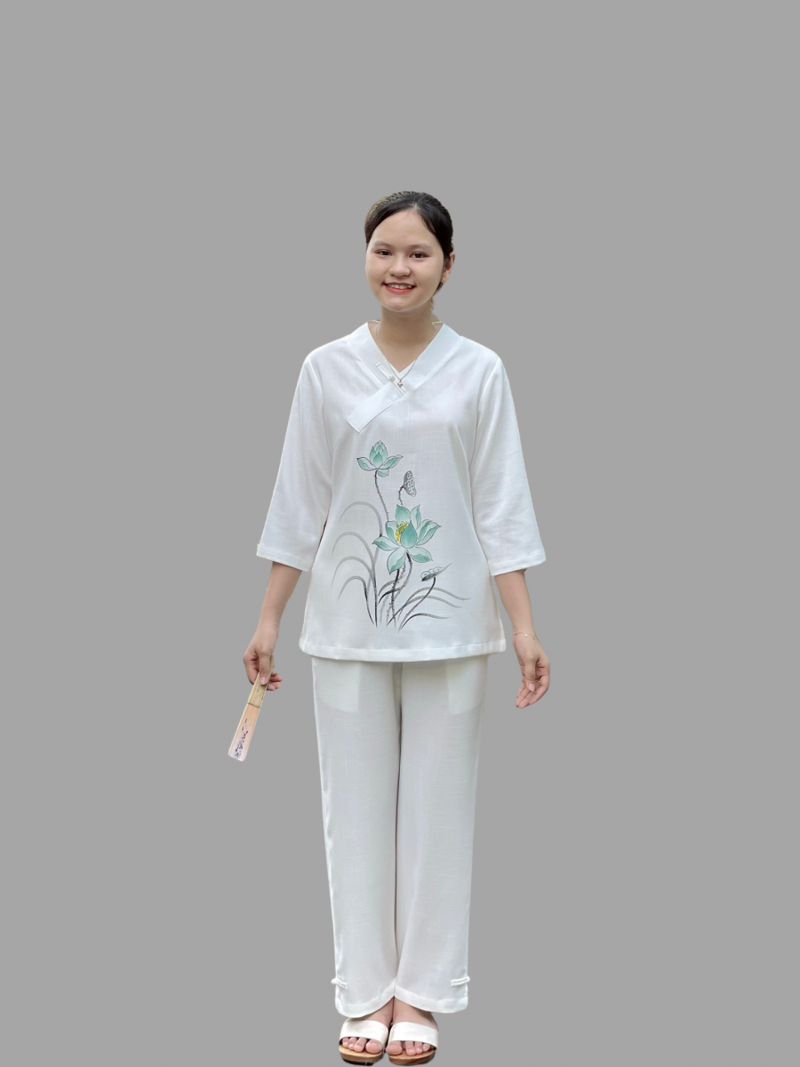 Bộ Minh Tuệ - chất liệu vải vải thô Cara hoặc thô đũi Linen thuộc một trong những loại vải có tính bền và thân thiện với môi trường. Ưu điểm chính phải kể đến chính là tính an toàn (không gây kích ứng da) và khả năng thấm hút mồ hôi quá tuyệt vời của vải thô. Với thành phần chủ yếu là sợi bông và sợi gai (đay), vải thô có thể nói là loại vải nhẹ nhàng nhất, thích hợp nhất dành cho các mùa và dành cho người tu thiền, tập dưỡng sinh yoga