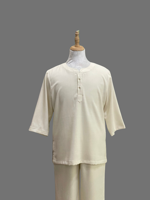 Bộ An Đức Nhật - chất liệu vải quý khách có thể chọn từ vải thô Cara hoặc thô đũi Linen thuộc một trong những loại vải có tính bền và thân thiện với môi trường. Ưu điểm chính phải kể đến chính là tính an toàn (không gây kích ứng da) và khả năng thấm hút mồ hôi quá tuyệt vời của vải thô. Với thành phần chủ yếu là sợi bông và sợi gai (đay), vải thô có thể nói là loại vải nhẹ nhàng nhất, thích hợp nhất dành cho các mùa và dành cho người tu thiền, tập dưỡng sinh yoga