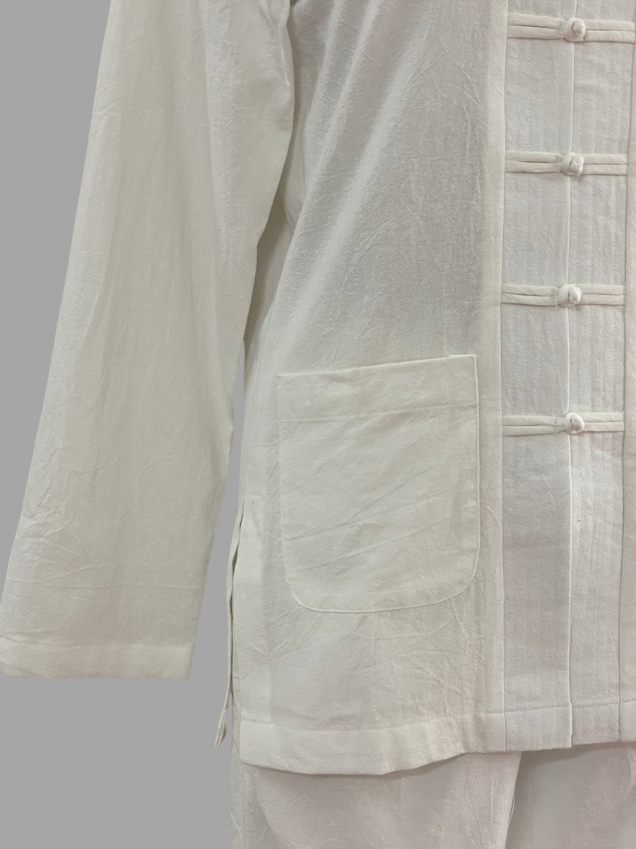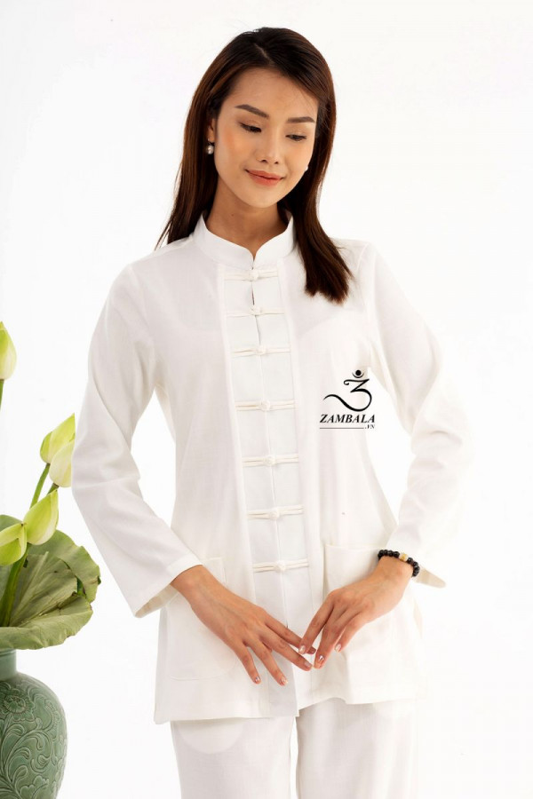 Bộ Lãnh Tụ Nữ - chất liệu vải vải thô Cara hoặc thô đũi Linen thuộc một trong những loại vải có tính bền và thân thiện với môi trường. Ưu điểm chính phải kể đến chính là tính an toàn (không gây kích ứng da) và khả năng thấm hút mồ hôi quá tuyệt vời của vải thô. Với thành phần chủ yếu là sợi bông và sợi gai (đay), vải thô có thể nói là loại vải nhẹ nhàng nhất, thích hợp nhất dành cho các mùa và dành cho người tu thiền, tập dưỡng sinh yoga
