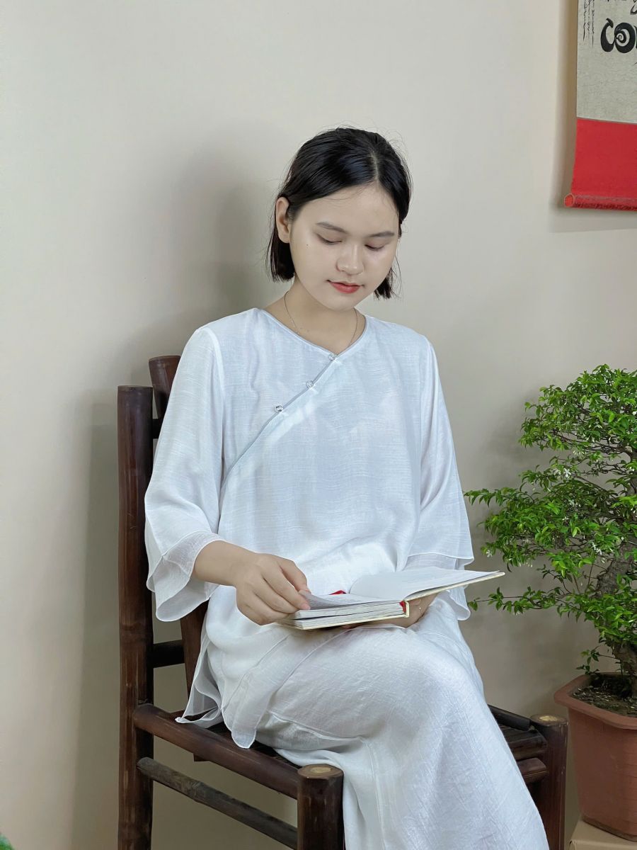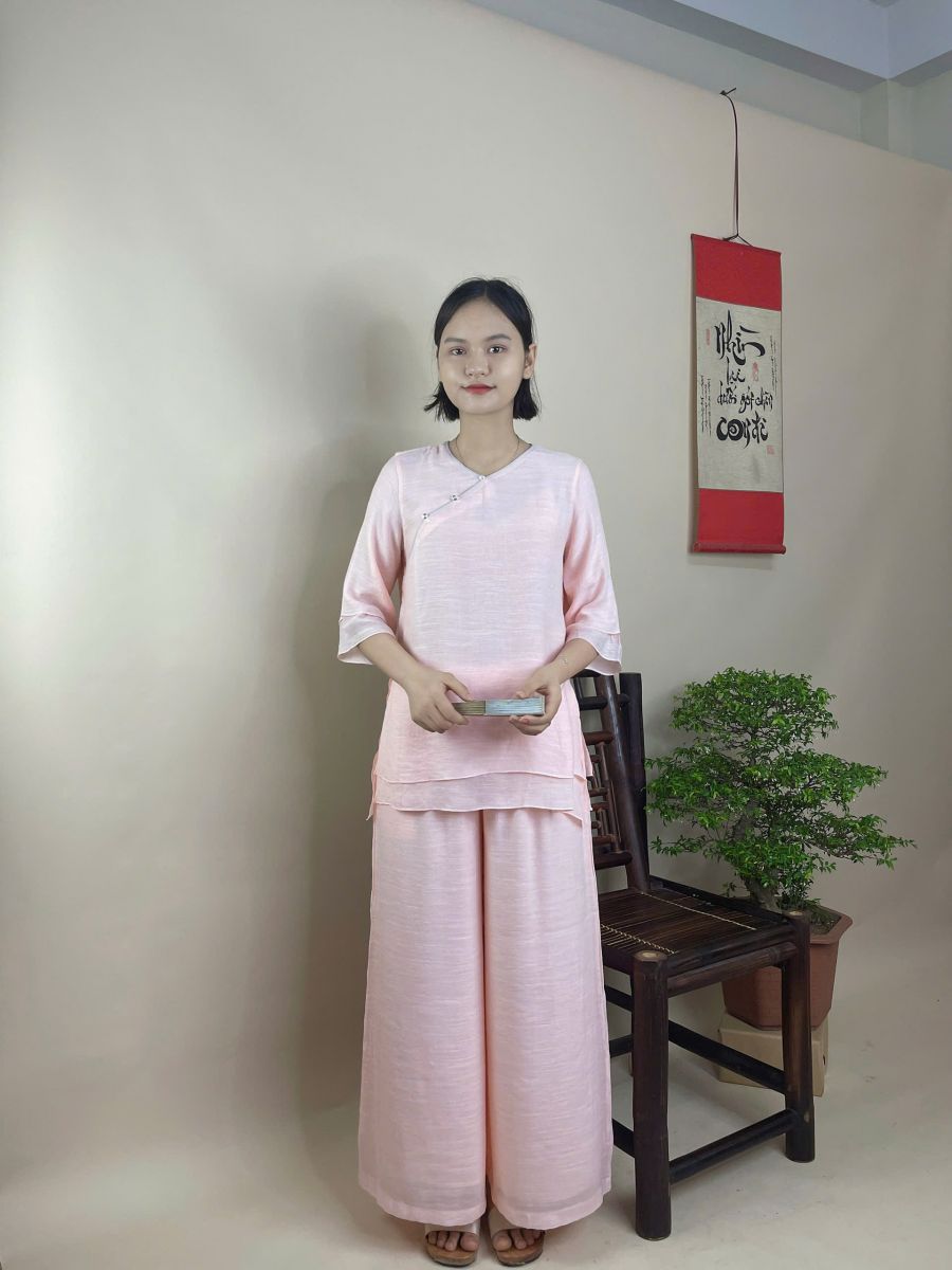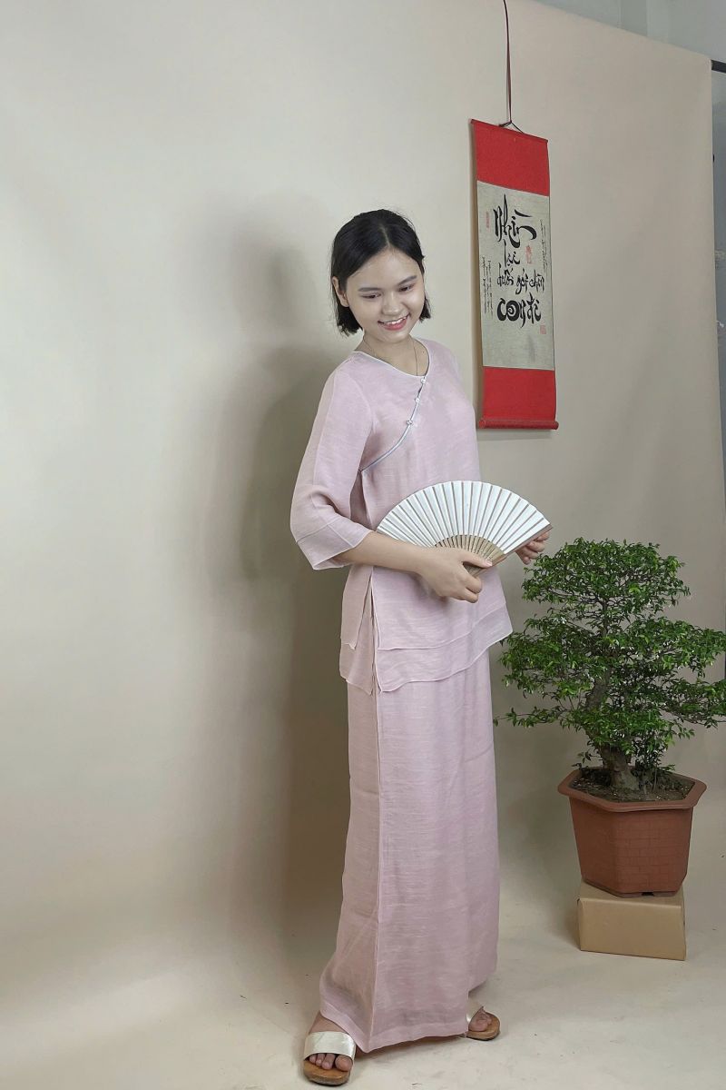 Bộ Cô Tiên - chất liệu vải vải cắt may tay thủ công từng bộ bằng vải tơ đũi mềm mại nên rất dễ chịu và thân thiện với môi trường, được may 2 lớp vải nên nhìn kín đáo, được cắt may cần thận từng đường kim mũi chỉ