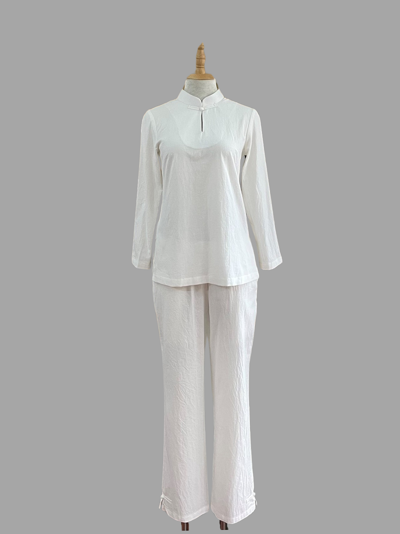 Bộ An Nhã Lương - chất liệu vải vải thô Cara hoặc thô đũi Linen thuộc một trong những loại vải có tính bền và thân thiện với môi trường. Ưu điểm chính phải kể đến chính là tính an toàn (không gây kích ứng da) và khả năng thấm hút mồ hôi quá tuyệt vời của vải thô. Với thành phần chủ yếu là sợi bông và sợi gai (đay), vải thô có thể nói là loại vải nhẹ nhàng nhất, thích hợp nhất dành cho các mùa và dành cho người tu thiền, tập dưỡng sinh yoga