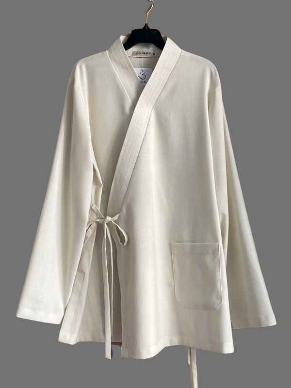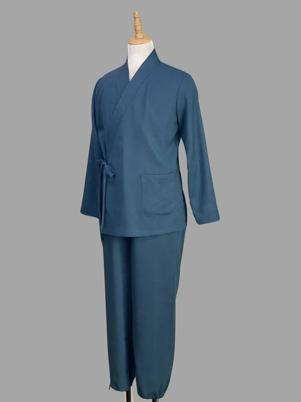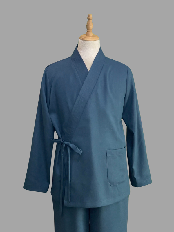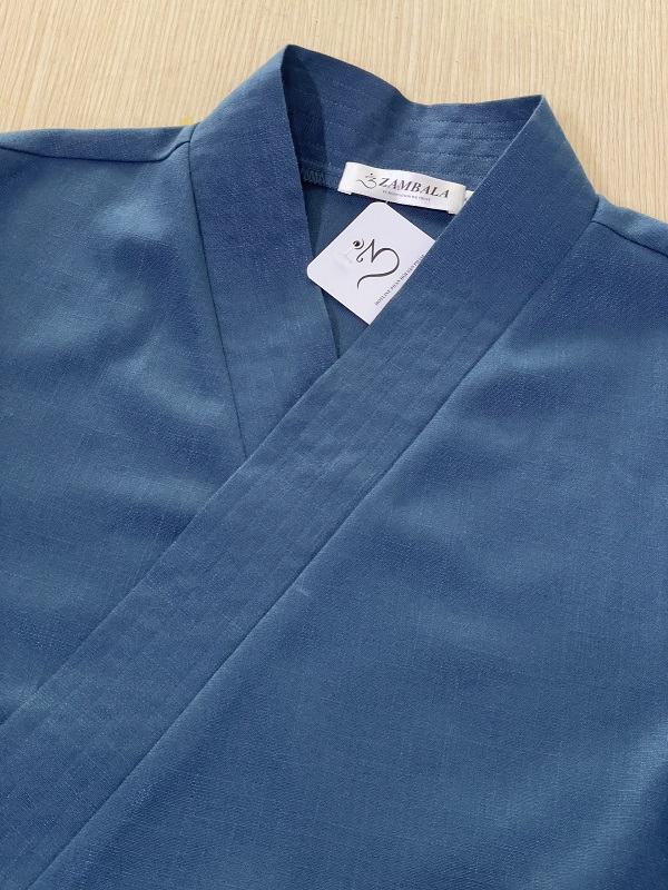 Bộ Đan Thiên Nam - chất liệu vải vải thô Cara hoặc thô đũi Linen thuộc một trong những loại vải có tính bền và thân thiện với môi trường. Ưu điểm chính phải kể đến chính là tính an toàn (không gây kích ứng da) và khả năng thấm hút mồ hôi quá tuyệt vời của vải thô. Với thành phần chủ yếu là sợi bông và sợi gai (đay), vải thô có thể nói là loại vải nhẹ nhàng nhất, thích hợp nhất dành cho các mùa và dành cho người tu thiền, tập dưỡng sinh yoga