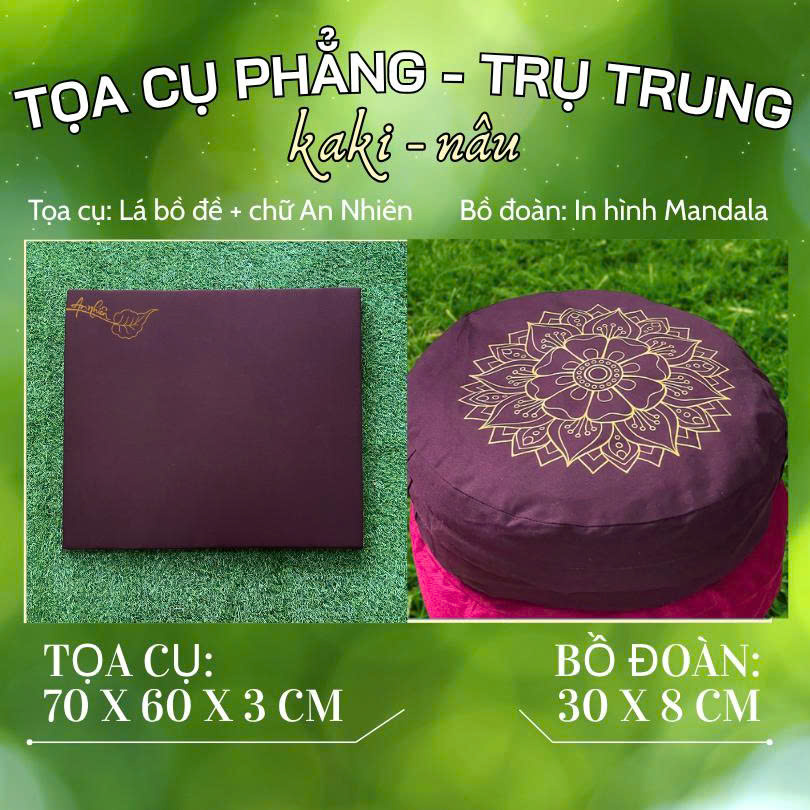 Bồ đoàn trụ tròn trung (chuẩn thiền viện): Đường kính 30cm | Cao 8cm | Nặng ~1kg.